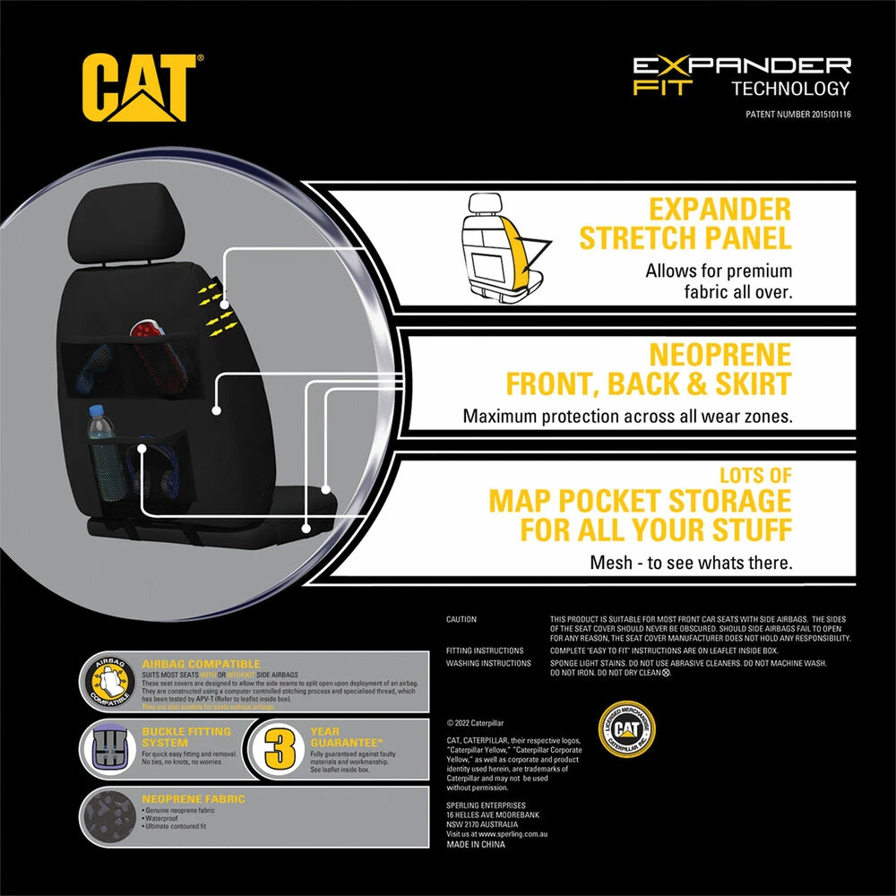 Spruce up your car interior in comfort and style with a set of CAT Caterpillar Seat Covers. Made with strong, water and wear resistant materials, these seat covers will keep your seats protected, ideal for those off-road adventures.