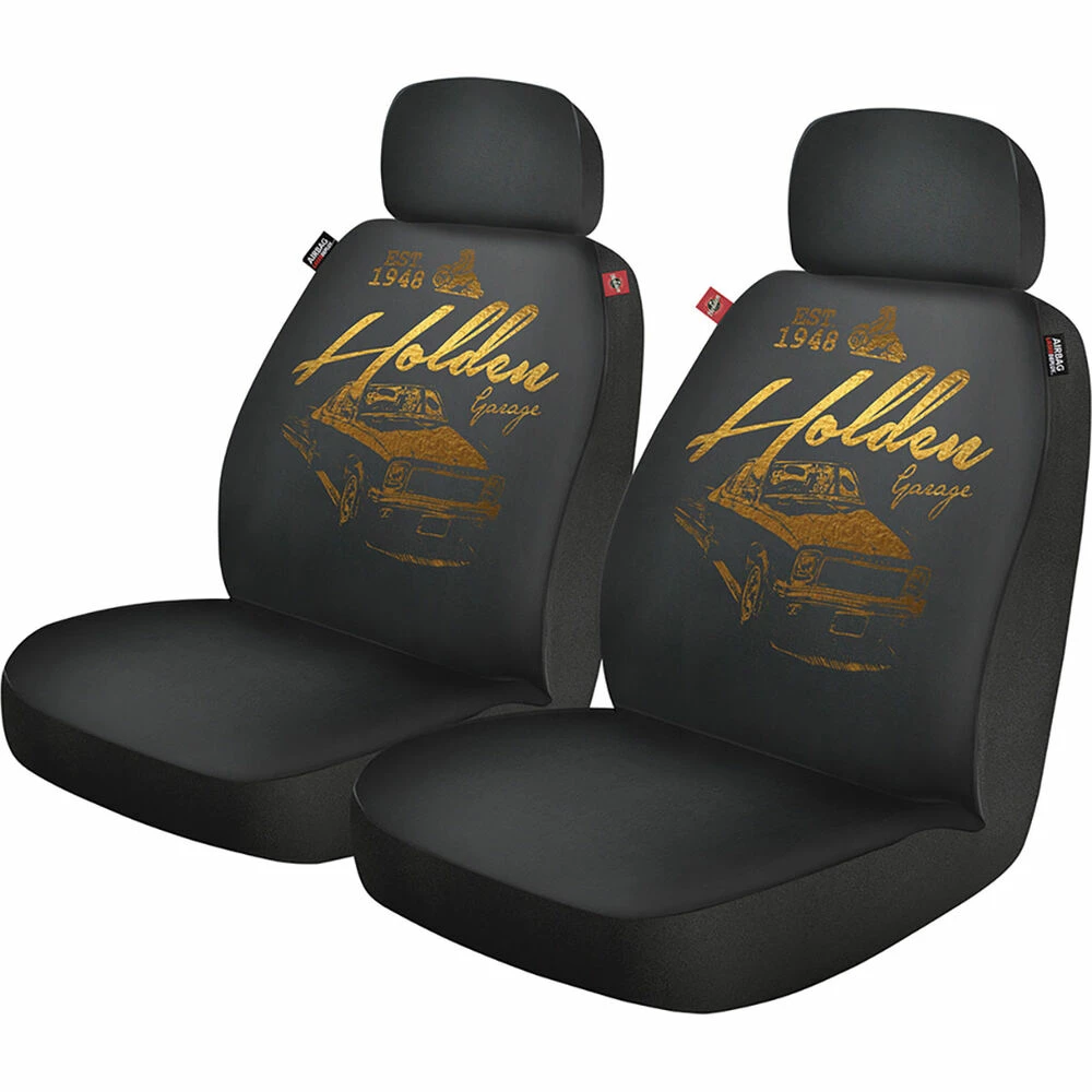This pair of covers suit front bucket seats with adjustable head rests and with or without side air bags. Fitment is made easy with hook and loop straps which can be easily adjusted as the covers contour to your seats over time. Add a little bit of Holden flair to your interior and grab a pair of these Holden Garage seat covers.