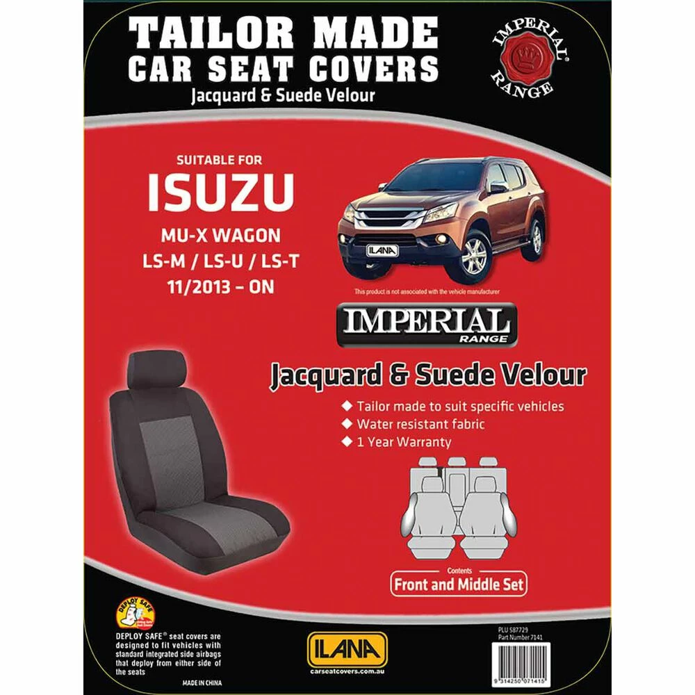 - A two row set of tailor made front and rear seat covers to suit Isuzu MU-X, 11/2013 onwards