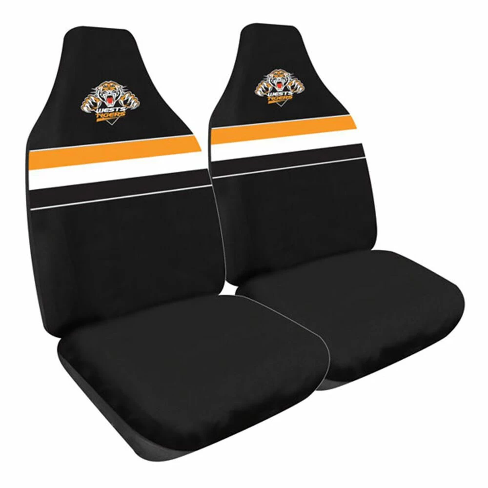 Cheap โค๏ธ NRL Seat Covers – Tigers, Built-In Headrests, Size 60 Front Pair ๐งจ