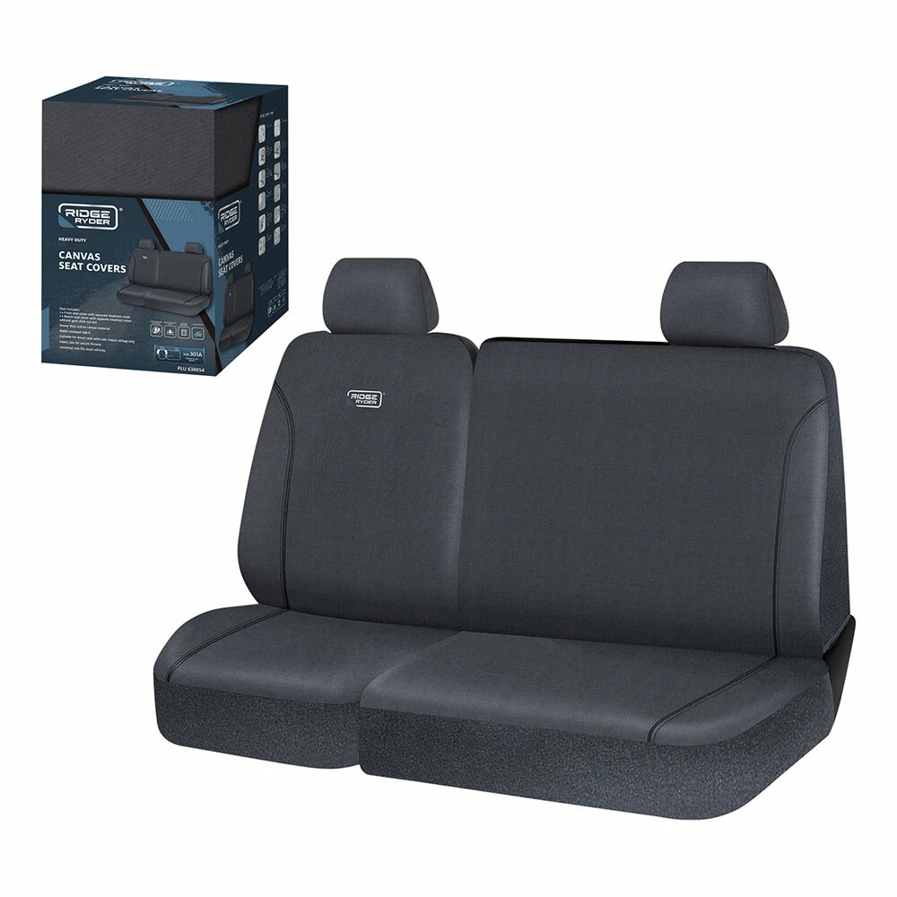 Spruce up your car interior in comfort and style with a set of Ridge Ryder Canvas Seat Covers. Made with strong, water and wear resistant cotton canvas material, these seat covers will keep your seats protected, ideal for those off-road adventures. Installation is simple thanks to straps with a hook & loop system and d-ring.
