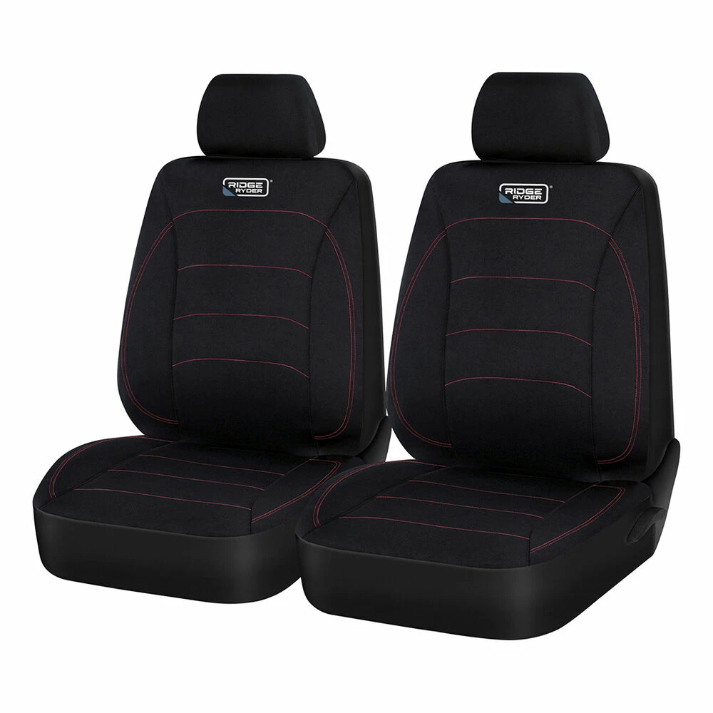 Spruce up your car interior in comfort and style with a set of Ridge Ryder Neoprene Seat Covers. Made with strong, water and wear resistant neoprene material these seat covers will keep your seats protected, ideal for those off-road adventures. Installation is simple thanks to straps with a hook & loop system and d-ring.