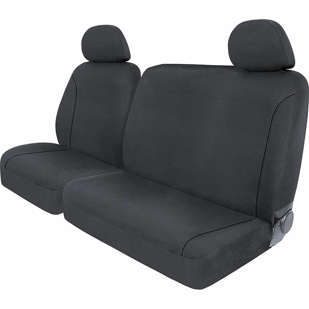 - A single seat cover suitable for a front bench seat with adjustable headrests and no tunnel cut out