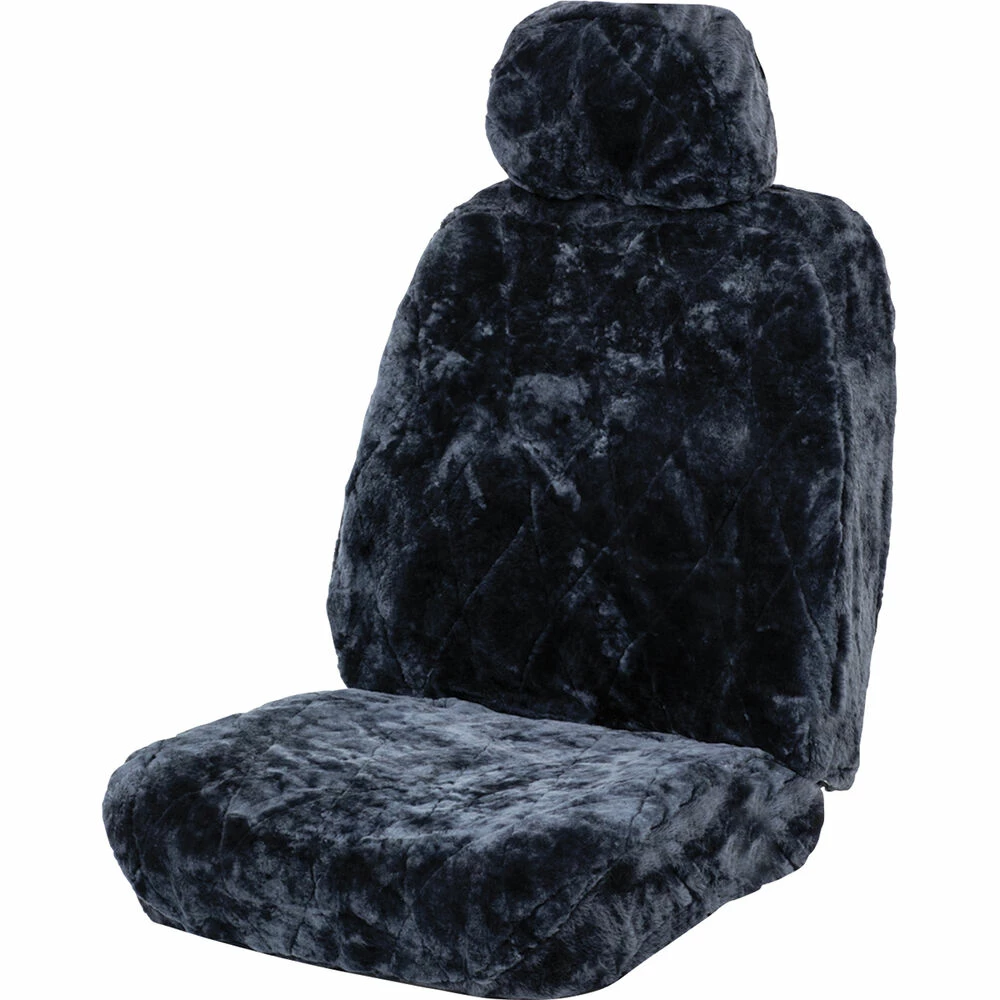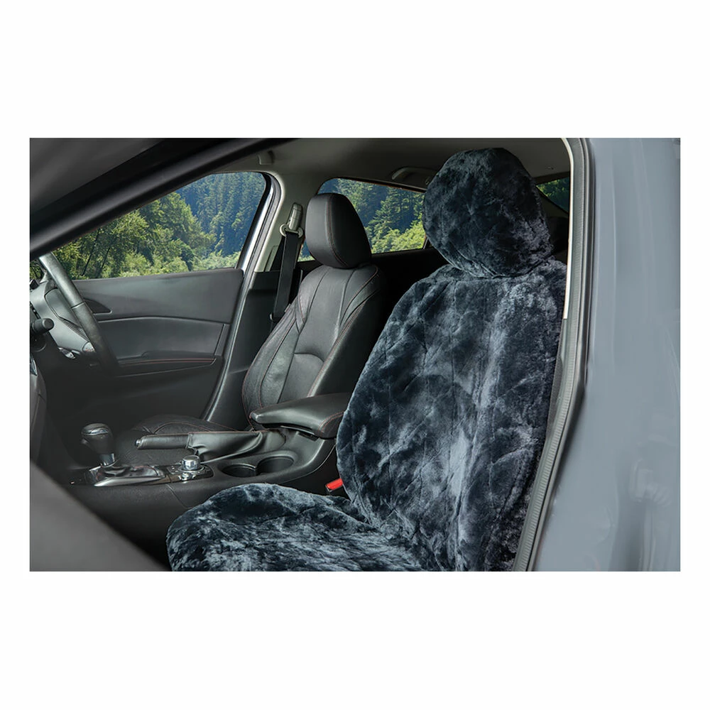 Sheepskin car seat covers are a fantastic addition to any vehicle, holding in warmth during winter and allowing air flow during summer. This SCA Sheepskin Seat Cover is designed to be a universal fit for single front bucket seats with adjustable head rests with or without side airbags. Manufactured from charcoal coloured patchwork sheepskin on the front side of the covers, and finished with matching acrylic fur around the skirt and back side.