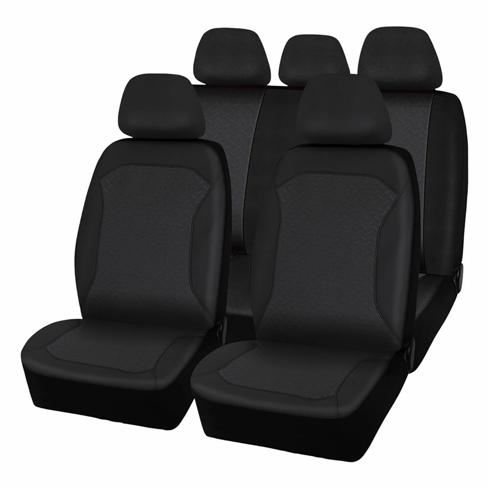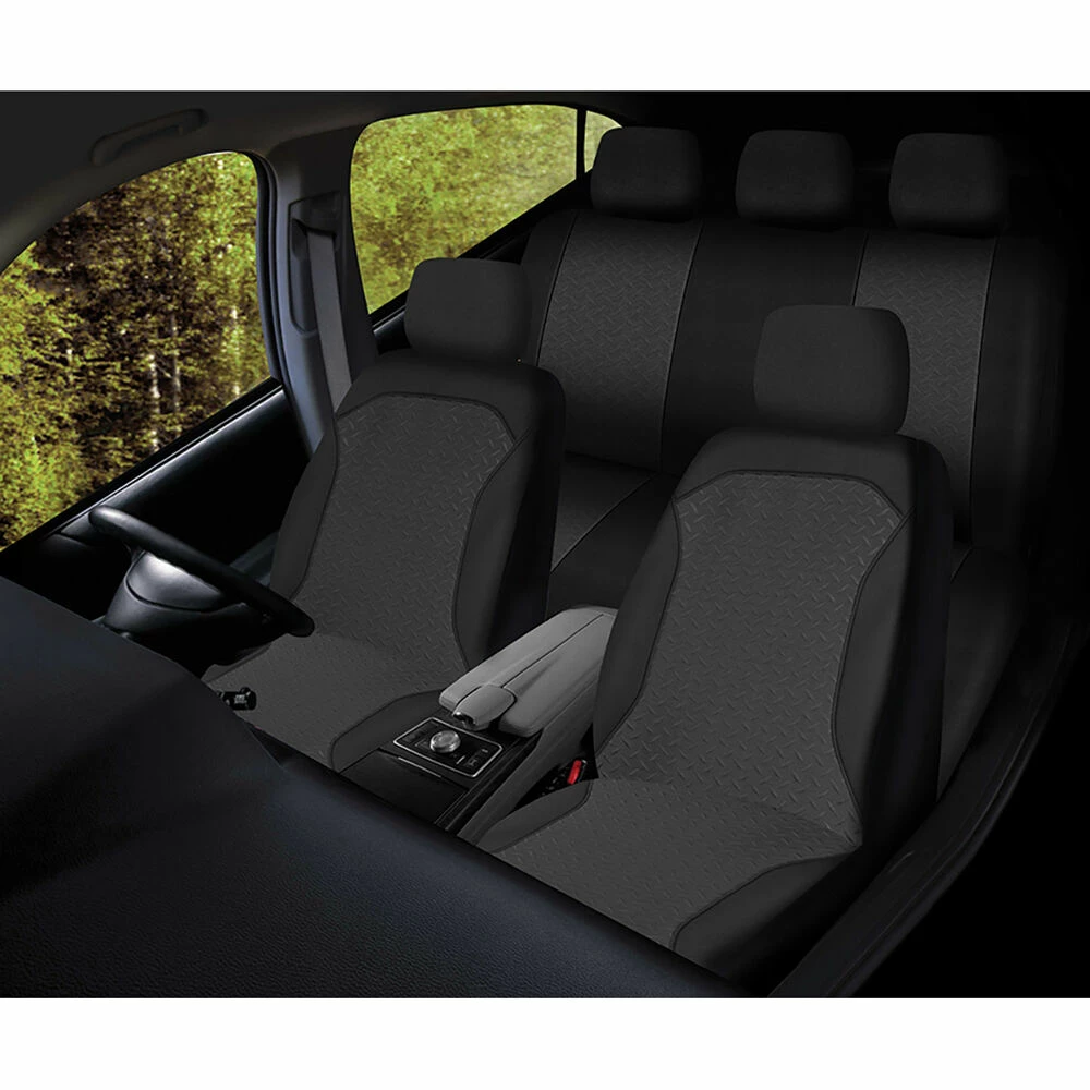 Coupon 😉 SCA Embroidered Jacquard Seat Cover Pack – Black, Adjustable Headrests, Airbag Compatible ❤️