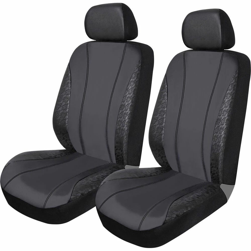 Hot Sale โ๏ธ SCA Leather Look & Black Lace Seat Covers – Black, Adjustable Headrets, Airbag Compatible ๐