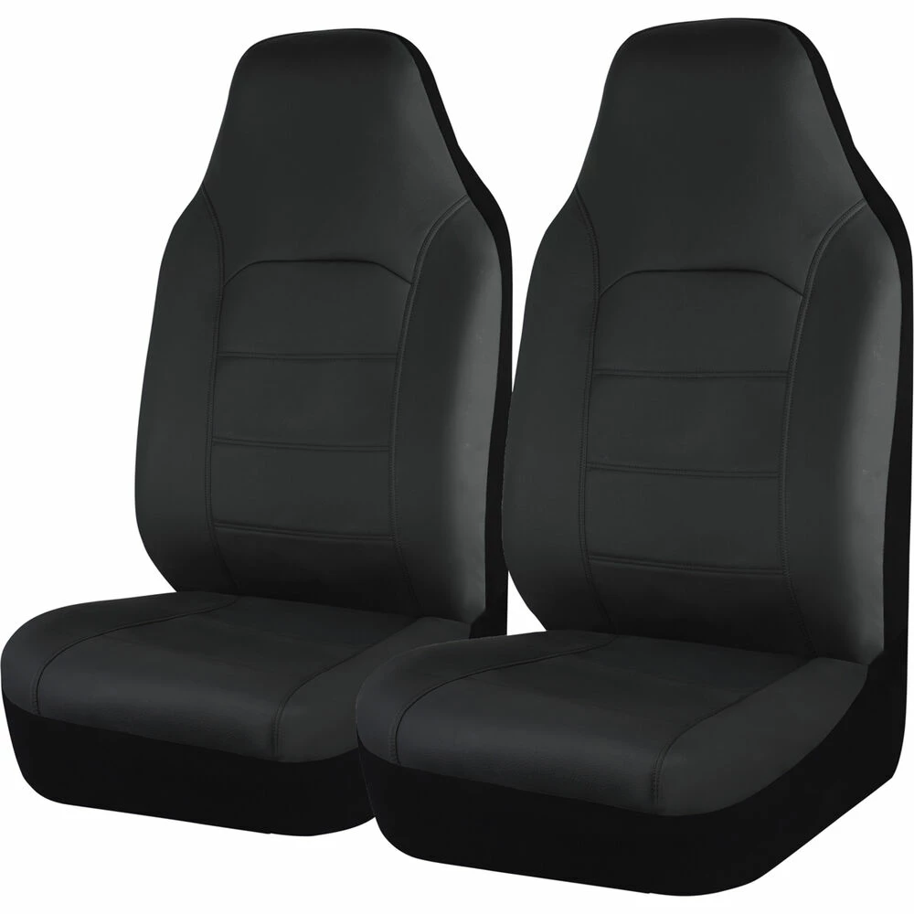 - Two seat covers suitable for bucket seats with built-in headrests, with or without side air bags
