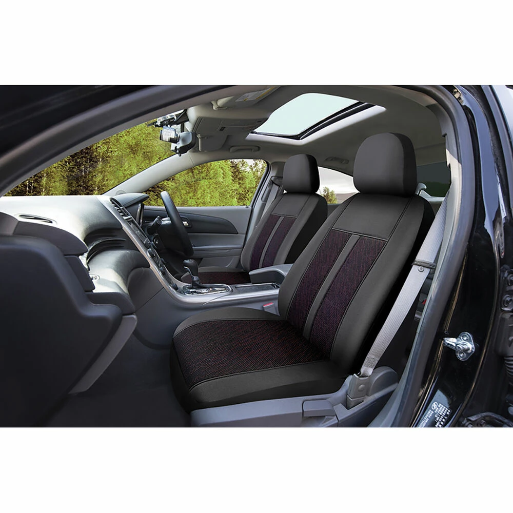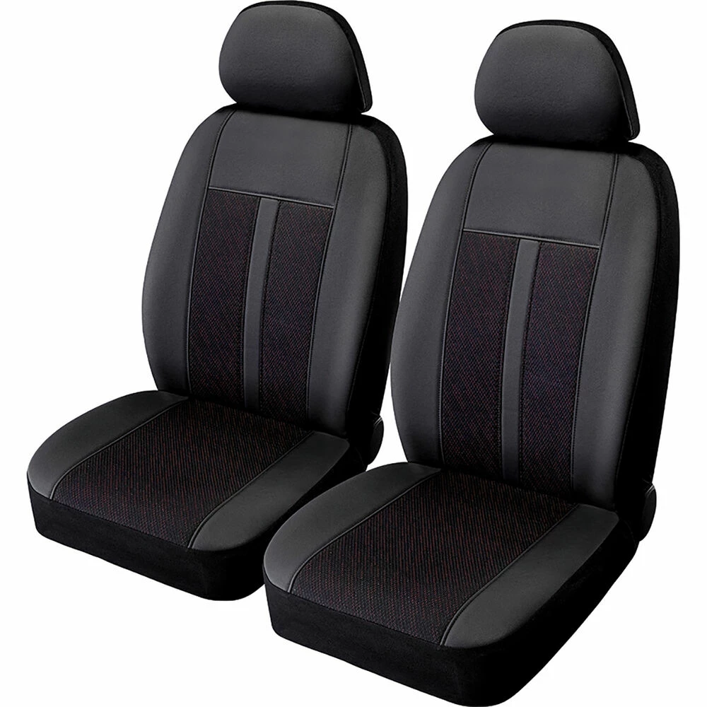 Best deal 👍 SCA Premium Jacquard & Leather Look Seat Covers – Black/Red Adjustable Headrests Size 30 Front Pair Airbag Compatible 😉
