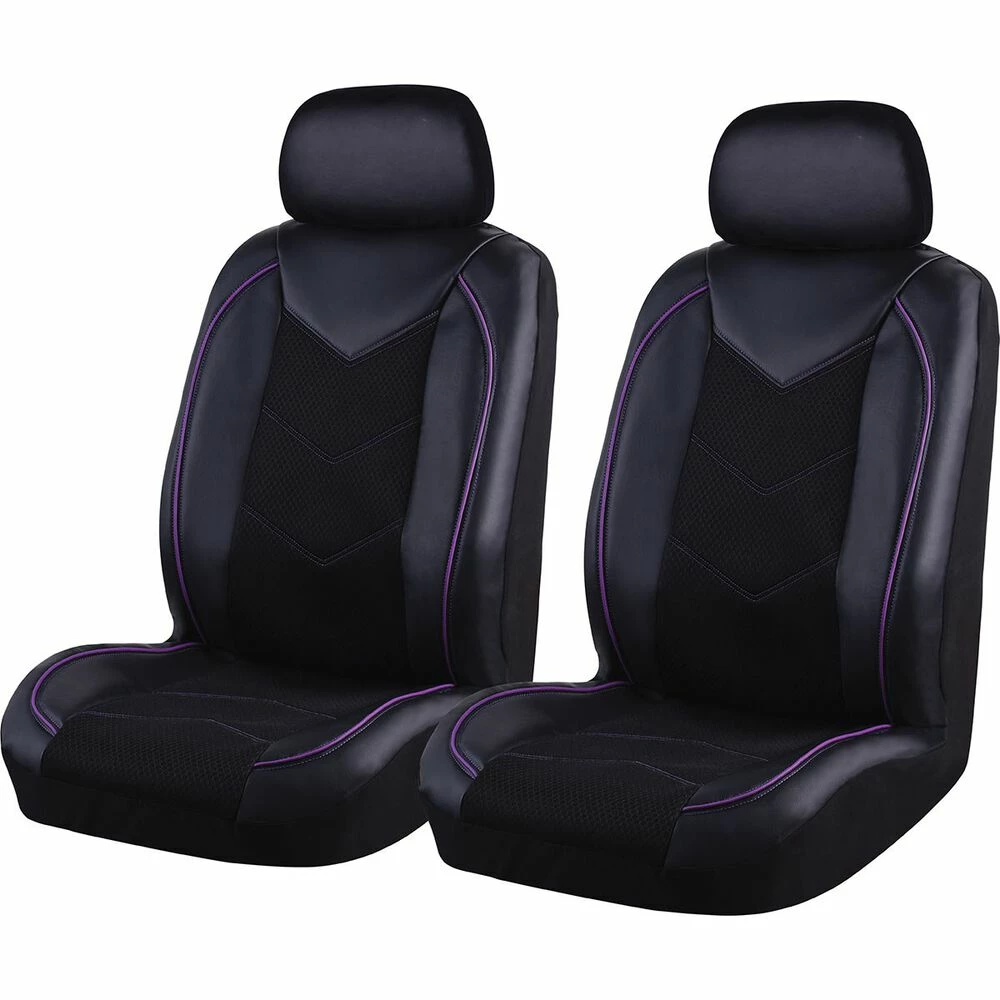 New 🥰 SCA Sports Leather Look And Mesh Seat Covers – Black And Purple Adjustable Headrests Airbag Compatible ✔️