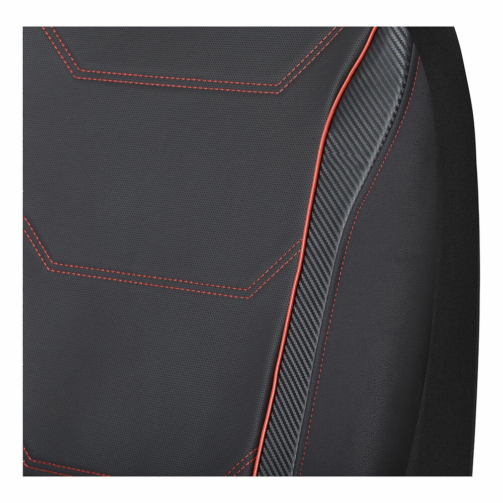 Budget 🌟 SCA Sports Leather Look & Carbon Seat Covers Black/Red Adjustable Headrests Airbag Compatible ⌛