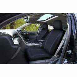 Budget 🎁 SCA Denim & Twill Polyester Seat Covers Black/Blue Adjustable Headrests Airbag Compatible 🎉