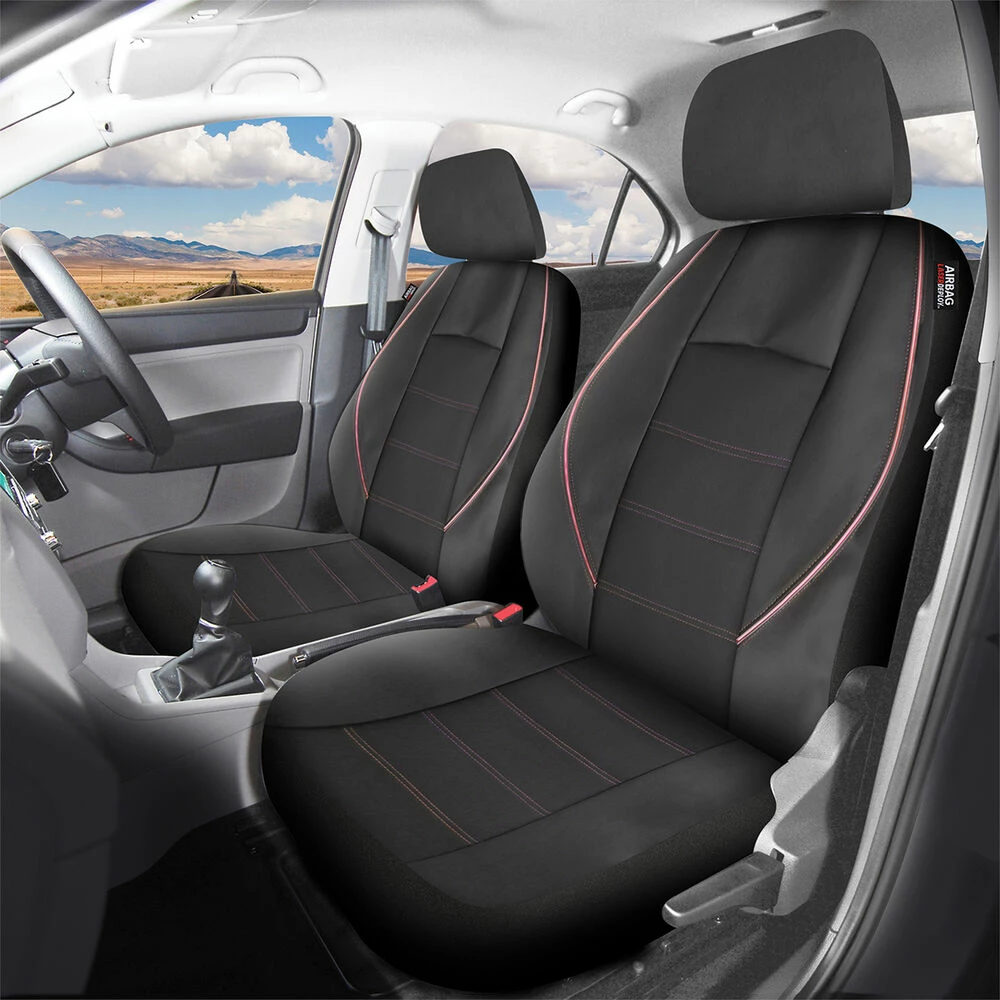 Best Sale ✔️ Who-Rae Neoprene With Piping Seat Covers Black/Gold Adjustable Headrests 💯