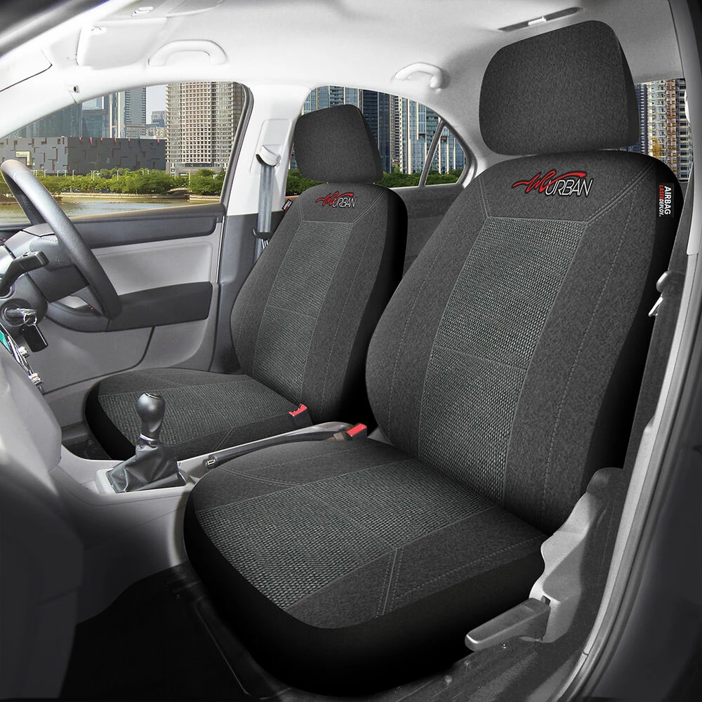 - Two front seat covers suitable for bucket seats with adjustable headrests, with or without side air bags